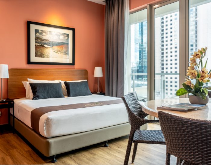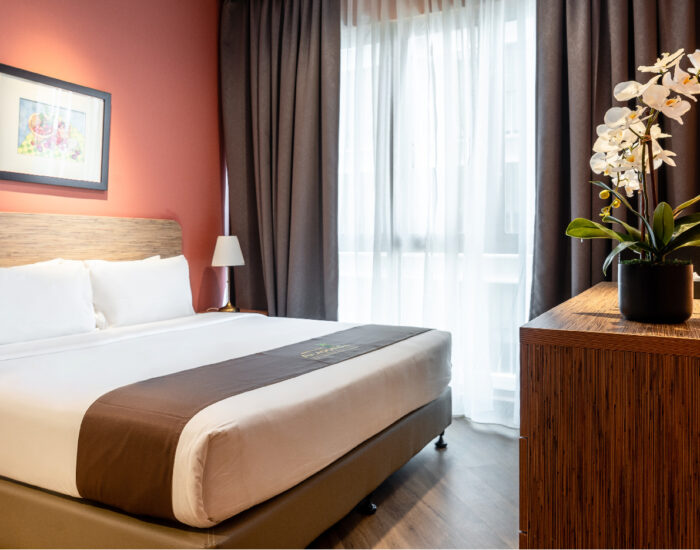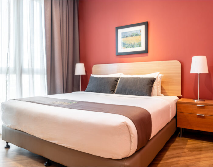 Fitted with 1 Double/King Posturepedic Bed, this suite is able to accommodate 2 adults comfortably. Equipped with 1 Bathroom with options of Hot/Cold Showers, a full range of shower amenities are also provided for your convenience.